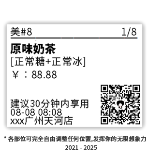 外卖标签工具软件,支持各部位随意放置到任意位置,这个是别人无法模仿的。支持指定某些产品打印,这个是正版独有的功能。支持双平台同时来单自动打印,这也是独有技术。支持USB、串口、并口、蓝牙、网口、WIFI等标签机,这个还是正版才这么强大的。支持手动打印功能,属于额外赠送的功能,也是其他软件无法做到的,你想打印任何文字内容都可以,可以保存无限个模板。6:安装这个外卖标签工具,占用系统内存跟空间吗?